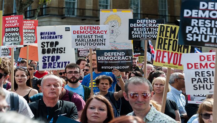 আচমকা পার্লামেন্ট স্থগিত করার বিষয়ে ব্রিটিশ প্রধানমন্ত্রী বরিস জনসনের নেওয়া সিদ্ধান্তের প্রতিবাদে এবার ব্রিটেনজুড়ে বিক্ষোভ পালন করছেন জনগণ। যার অংশ হিসবে ম্যানচেস্টার, লিডস, ইয়র্ক ও বেলফাস্টের সড়কে নেমে আসেন হাজারো বিক্ষোভকারী।